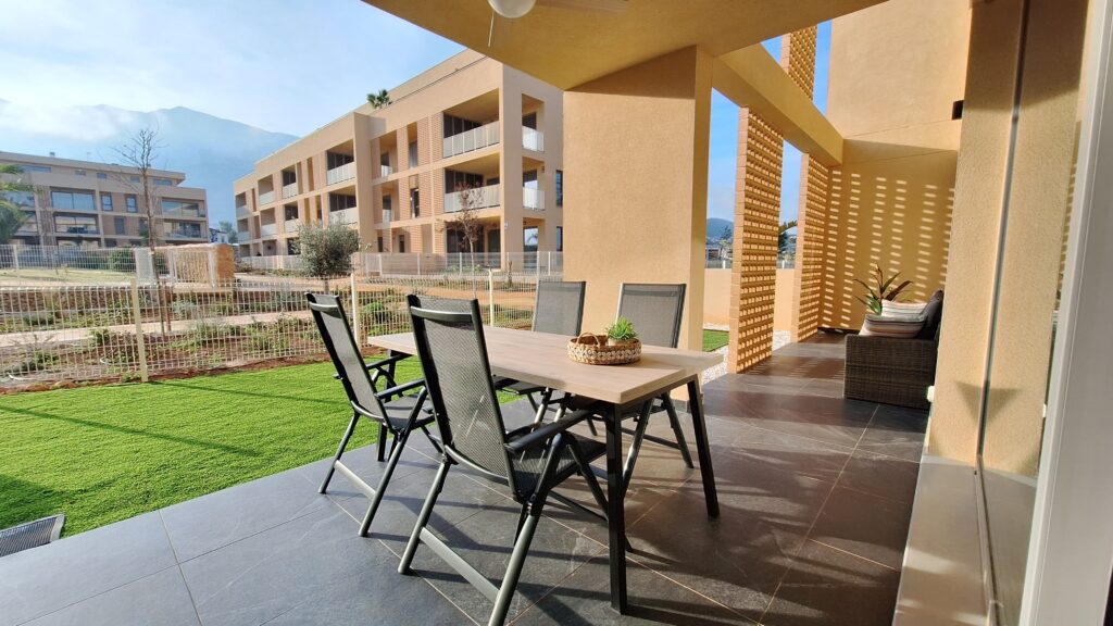 Ontdek dit gloednieuwe luxe appartment in Dénia: in een stijlvol en ruim opgezet resort op slechts enkele minuten van het centrum, de haven en de goudgele stranden. Op de begane grond geniet je van het overdekte terras inclusief ruime tuin en loop je zo naar het zwembad. Dit moderne complex, opgeleverd in september 2025, combineert eigentijds design met weelderige mediterrane beplanting en is ruim opgezet. Kortom een unieke plek in Dénia.
